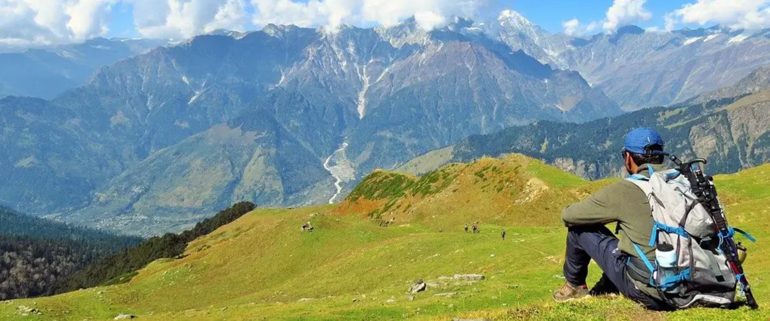 The journey begins from Gulaba and quickly takes you above the tree line, where endless rolling meadows stretch as far as the eye can see. As you ascend, the panoramic views of snow-covered peaks like Hanuman Tibba, Deo Tibba, and the Pir Panjal range create a dramatic backdrop throughout the trek. The open landscapes, cool mountain breeze, and peaceful surroundings make every step refreshing and rewarding.