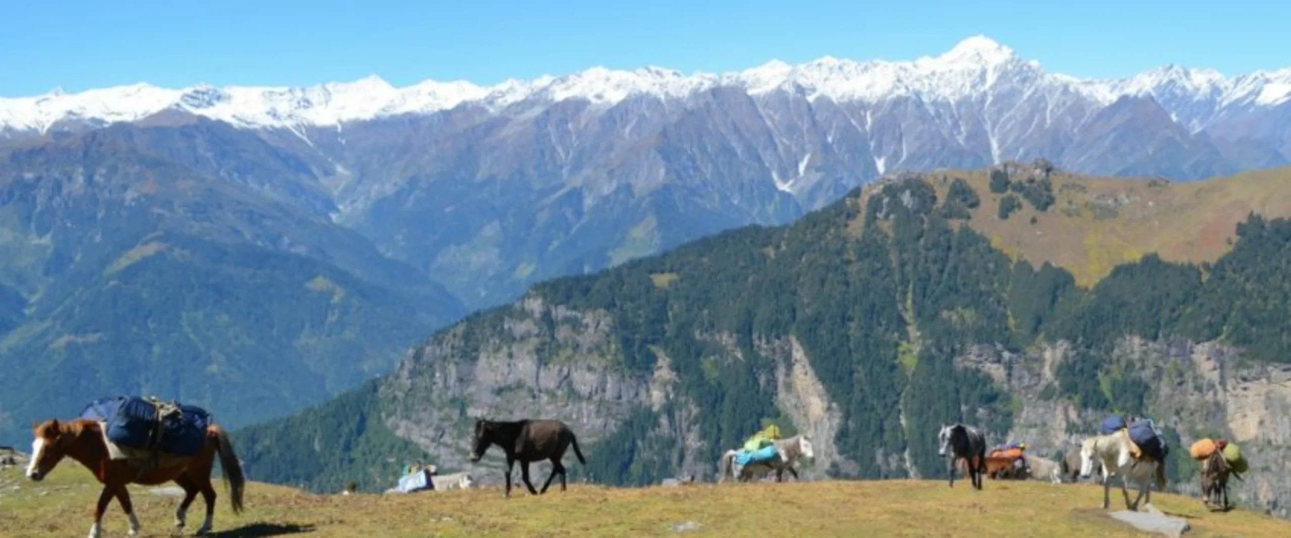 The journey begins near Manali, taking you through dense pine forests, riverside trails, and vast alpine meadows. As you gain altitude, the landscape transforms into rocky terrain and snow-covered slopes. Crossing Hampta Pass at an altitude of approximately 14,100 ft, you witness breathtaking views of surrounding peaks and glaciers. The descent into Lahaul feels like stepping into a different world, with barren mountains and dramatic valleys.
